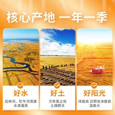 优质的五常大米,米香浓郁,口感软糯,符合家用标准。包装采用双层设计,外层防磨损,内层真空隔绝水分和阳光。