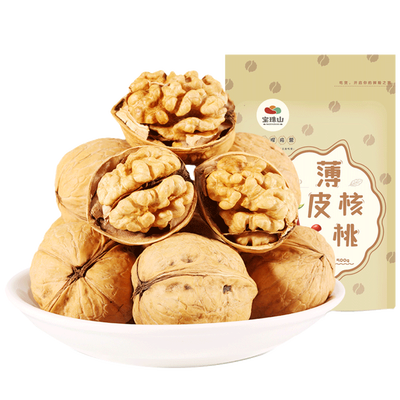 源自新疆的薄皮核桃,外壳轻薄易碎,用手轻轻一捏便可破皮。用天然的水源灌溉的核桃,吸收自然养分,好吃美味。