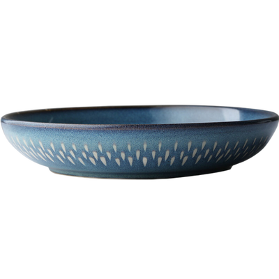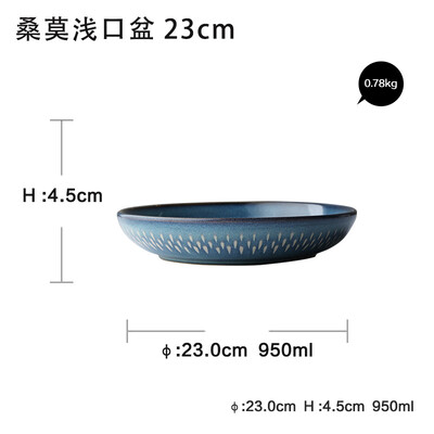 经过3次烧制,釉色漂亮,颜色在深蓝与浅蓝间交互体现,浅口设计,器型功能多用,表面手感光滑。