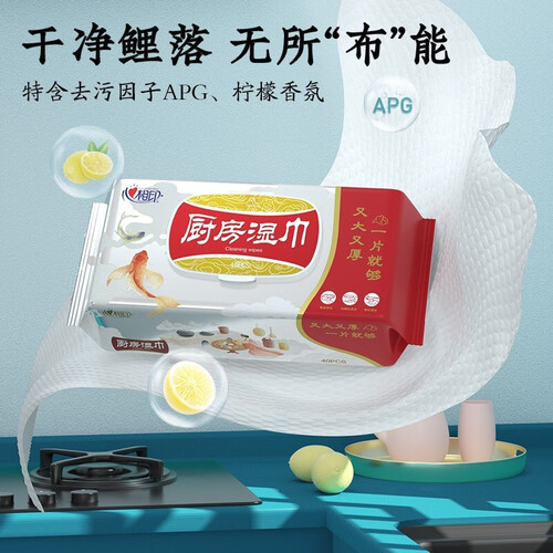 选用优质水刺无纺布,结合网织新工艺,表面珍珠压纹美观坚韧、纸巾厚实不易破。特含清洁剂成分,轻松去污,洁净加倍。