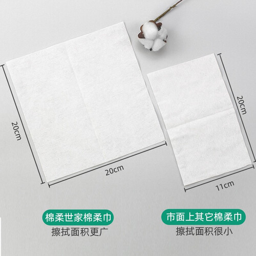 绵柔世家棉柔巾支持干湿两用,干用时可以轻敷于面部吸走水分,湿用时不易变形与断裂且舒适度与清洁效果更佳,性价比很高。