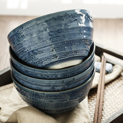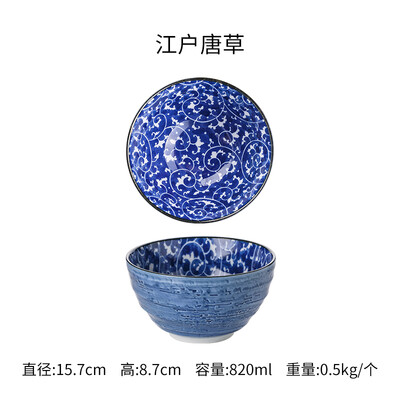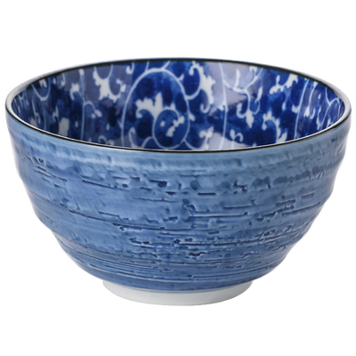 传承日式青花设计,碗内花纹繁复曼妙,外壁粗糙豪迈,内外对比鲜明,颇有艺术感。碗体硕大,深而圆润,吃起饭来畅快满足。