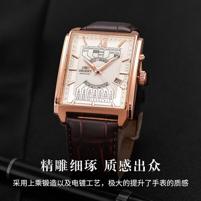 别致的长方形表盘,搭配大直径设计,更能彰显您别具一格的时尚品味。全自动机械机芯,内部零件经过精密组装,走时更加精准。