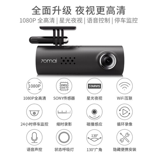 采用了索尼IMX307星光夜视传感器,使记录仪在夜晚也能拥有很好的成像效果。一键智能启动,随车智能开机。