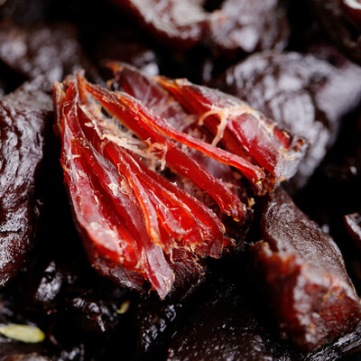 源自内蒙科尔沁上等牛肉,色泽鲜亮肉质紧密,手工切条腌制晾晒烘烤而成。肉香浓郁口感醇厚劲道,为你带来不一样的味蕾体验。