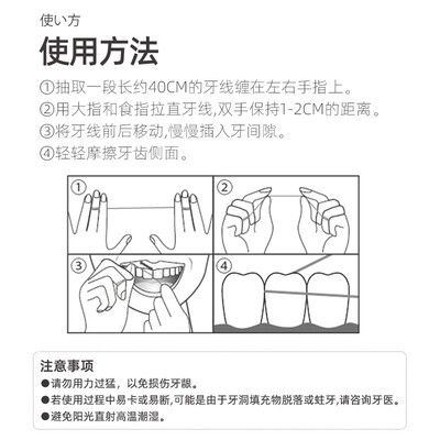 特选优质线丝,可以遇水膨胀,从而填充牙缝残留,清洁牙齿牙龈每一个部位,同时添加氟配方,能够强健牙齿,维护牙周健康。