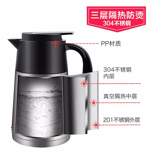 采用不锈钢材质,坚固耐用,延长使用的期限。搭配1200ml大容量,满足多人的饮用需要,无需经常烧水。