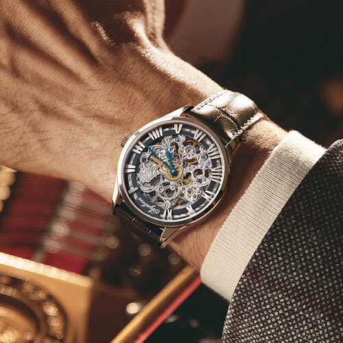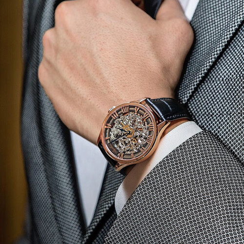 40毫米通透镂空表盘,机芯运转尽收眼底,走时精准。80小时动能存储,品质非凡。精致表冠,镌刻品牌四叶草标识,寓意好运。