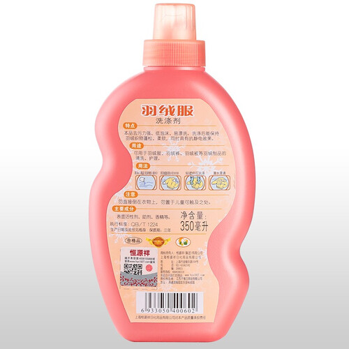 中性配方,呵护羽绒柔软舒适,不伤羽绒不伤面料。中性配方,即使手洗也不伤手。低泡易漂洗,省水省事。