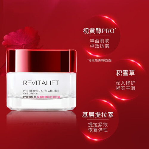 蕴含积雪草+基层提拉素,让眼部恢复弹性,提拉紧致。添加视黄醇PRO成分,可丰盈眼部的肌肤,帮助淡褪眼周细纹。