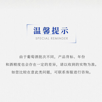 以两种葡萄品种混合酿制,散发诱人的鲜香味,使酒液愈加醇厚可口。酒香协调丰满,香气浓而不艳,可畅快享用。