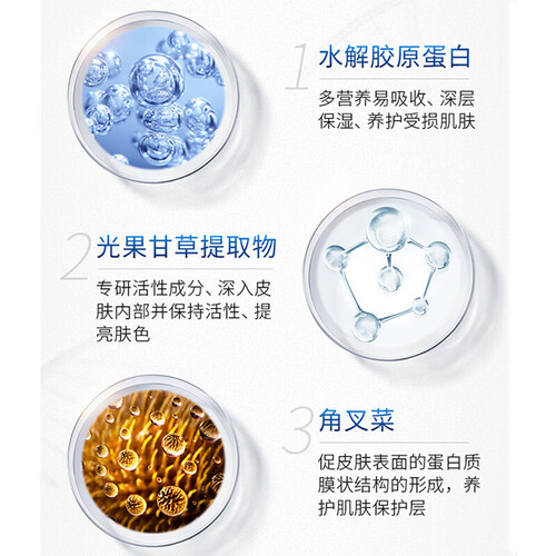 采用胶原蛋白膜体,有效赋活肌肤胶原弹性,深层滋养补水不反吸。添加光果甘草根提取物,有效改善暗沉提亮肤色。