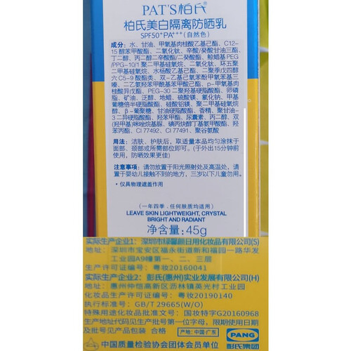 柏氏50倍隔离防晒霜