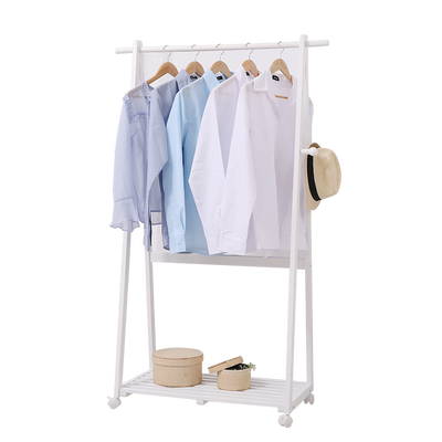 选用进口橡胶木打造,边角圆润无毛刺,挂置不伤衣,使用更舒心。底部装置万向滑轮,转向灵活,可轻松移动。