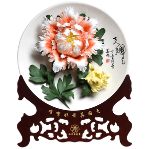 东方泥土 牡丹挂盘摆件