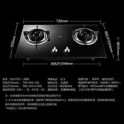 灶具面板采用钢化玻璃,坚固耐用质量可靠,同时方便清洗。聚能芯环使得火力集中强劲,加热均匀。