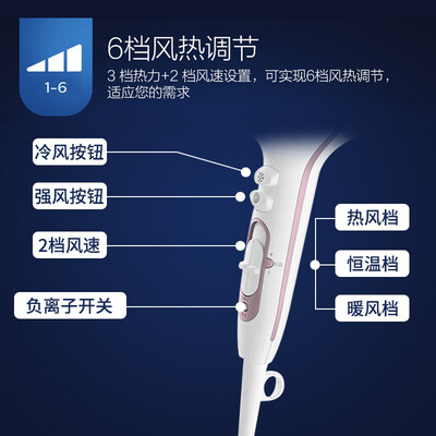 这款吹风机可自定义变速控温,搭载了2200w的大功率和恒温热力,能够保持秀发中的水分含量不低于10%,让头发莹亮柔软。
