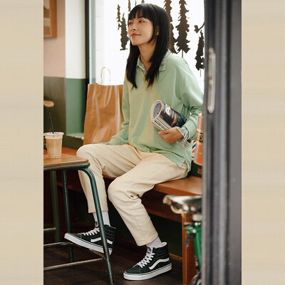 复古橄榄绿配色,清新自然四季皆宜,好看不掉色。传统高帮设计,舒适不磨脚脖,能搭多种下装。