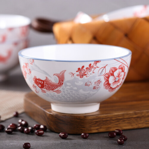 年年有鱼陶瓷餐碗,精致讨喜,迎合大众审美观。因其采用优质陶瓷制作,不含铅、镉成分,家用更安心。
