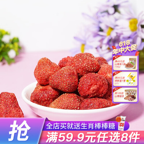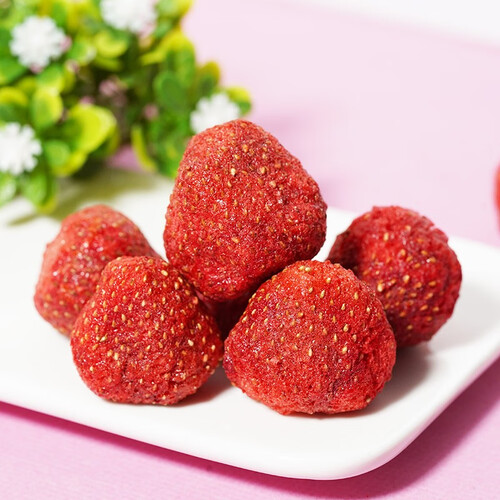 采用瞬间冻干技术,很大程度上保留住草莓的营养与清香口感。采用食品级材质包装,并且人性化易撕拉设计,食用更加方便。