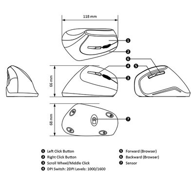采用了人体工学设计,握感舒适贴合手腕结构。DPI按键可以随心调节,一键可以快速的调节鼠标速度,满足办公游戏所需。