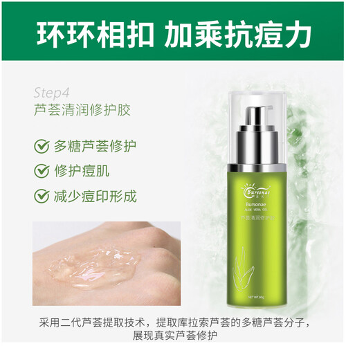 采用芦荟专利提取技术萃取多种芦荟精华,洗面奶温和清洁,消退痘根减少反复,原液和芦荟胶补水修护减少新生痘痘。