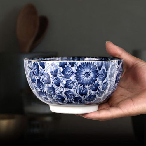 复古风陶瓷碗,带有精美的花卉图案,好看不缭乱,适合家用。通过高温烧制,瓷质紧密,温润如玉,品质上乘。