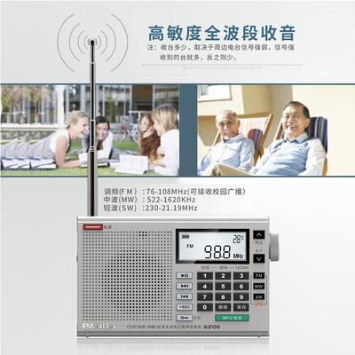 正面使用坚固的铝合金面板,提升收音机质感,更增强耐磨损能力。拥有全自动、半自动、旋钮及数字输入四种收台方式,收台更轻松。