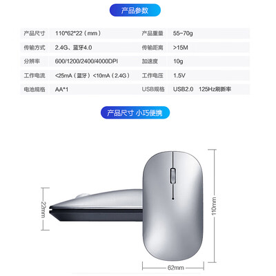 支持双模链接模式,可使用无线与蓝牙各链接一台电脑,并且操作简单。全金属表层,无缝切割,颜值高。