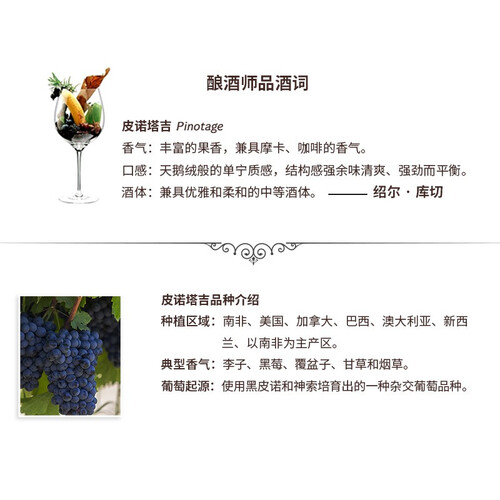 选用皮诺塔吉葡萄品种为原料,酒体强劲,又不乏清爽气息,余味独特而悠长,让人难以抗拒。