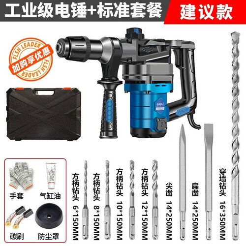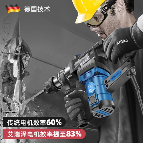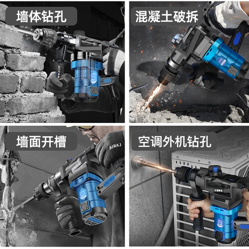 电锤拥有安全离合功能,钻到钢筋卡钻自动断开离合打滑,避免扭伤手臂的情况发生。负载3980W动力强劲,钻孔轻松不费力。
