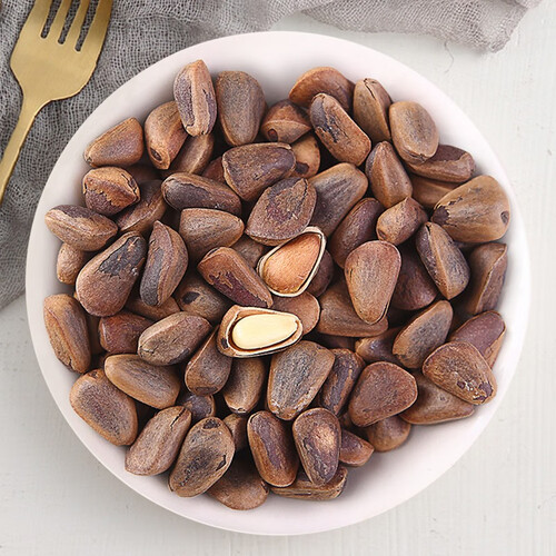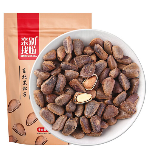 个大饱满的黑松子,轻加工烘焙,保留了松子的原香,营养又美味。