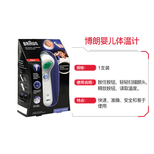 两种测量方式,可无接触式测量,适合宝宝使用,自带荧光和距离提示,方便妈妈操作。静音模式,不影响宝宝睡觉。