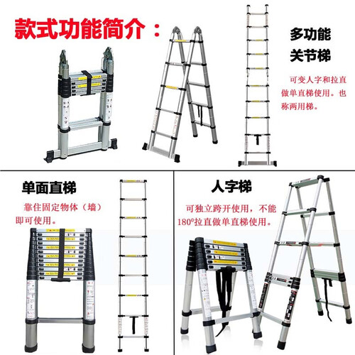 甄选铝合金材质制成的梯子,坚硬结实,大个子站上去也能稳固不倒。采用人字形设计,稳固不易倾倒,安全性更高。