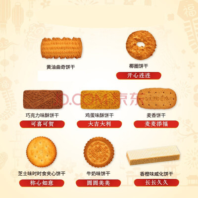 8种不同口味的饼干的组合装,给你多种选择,酥香的口感,伴有浓郁的麦香,十分诱人。