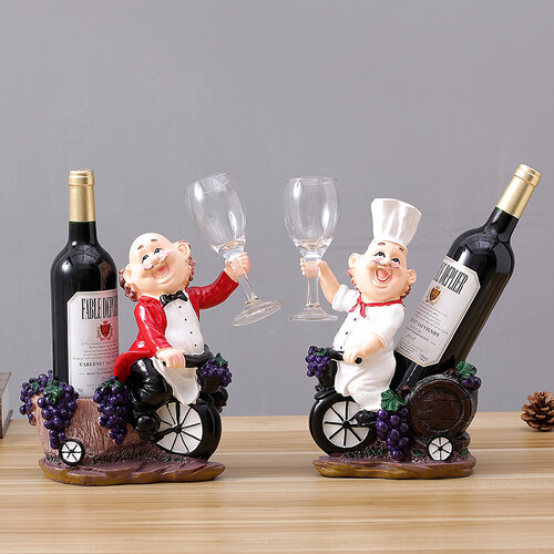 严选环保树脂材质,打造历久弥新品质;一红一白的厨师造型,手举酒杯更显俏皮,既是居家装饰摆件,也是红酒架,美观又实用。