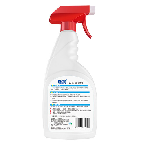 污垢活性剂和有机酸双重去除污垢,可轻松地去除水垢和皂垢,既省时又省力。气味清香怡人不刺激,可去除异味。