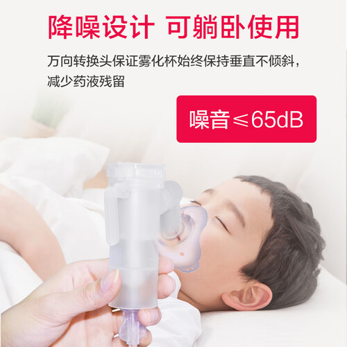 诺威娜的这一款压缩式雾化器,特别配备可360°万向旋转的转换头,保证雾化杯保持垂直,方便了病人躺卧时的使用。