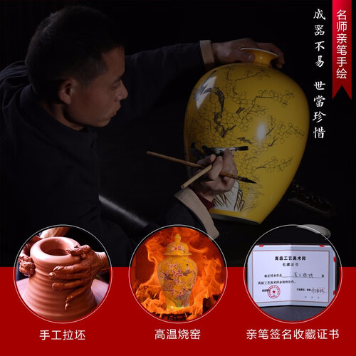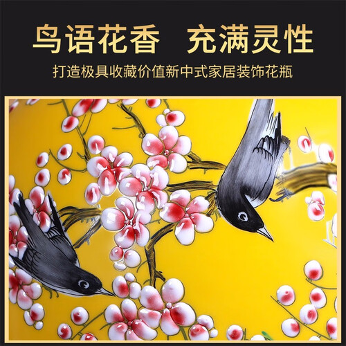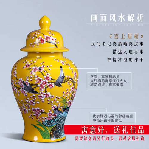 由手工绘制的喜上眉梢图案,呈现出一派鸟语花香的景致,配上饱满亮丽的色彩,显眼吸睛,作为艺术藏品也是不错的选择。