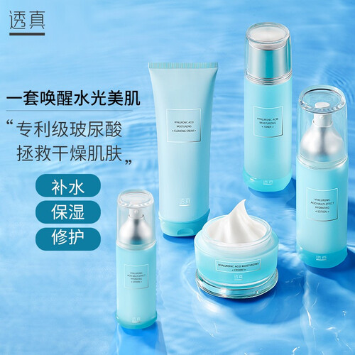 透真的这款补水保湿套装蕴含玻尿酸成分,能够渗透肌肤,为肌肤补充水分及营养,让你的肌肤具有丝滑水嫩的触感。