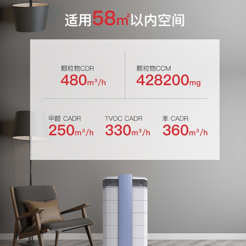 装修除异味专用净化器,除甲醛能力是国标的9倍,净化更彻底。六挡风速,贴心的换芯提醒,打造智能洁净家居。