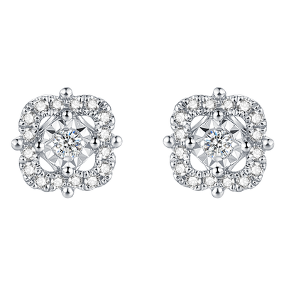 闪耀钻石装饰几何形耳钉,精致华美,别致亮眼,绽放耳畔光彩。配以方正礼盒包装,美观大气,可作为礼物送给女友。