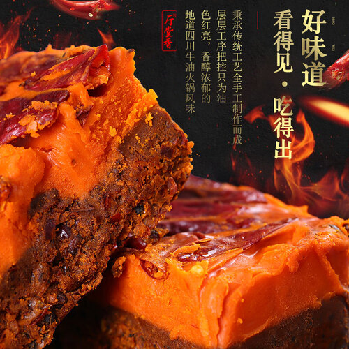 使用传统工艺手工制作而成,层层工序油色红亮,香醇浓郁。使用地道食材,十多味健康辅料,精心熬制,还原好味道。