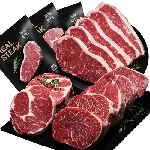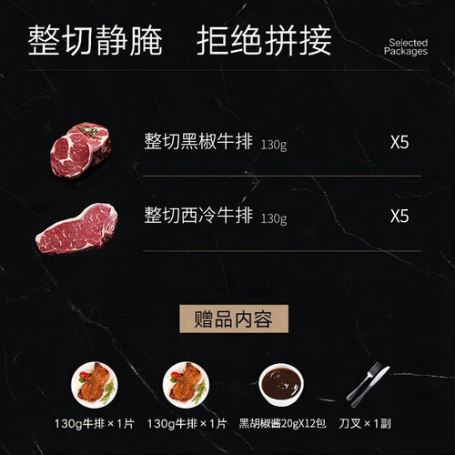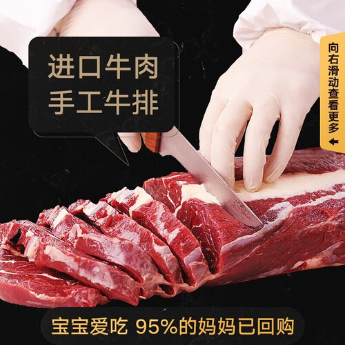 进口整根原料,非拼接品质上乘,新鲜又安全。手工修除油边筋膜,再辅以老师傅手工精准切片,使得牛排厚薄均匀,静腌后丝丝入味,鲜香细嫩。