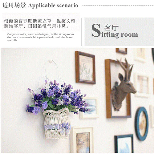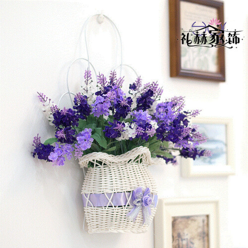 花篮采用手工仿藤编织,做工精细,装饰客厅,充满浪漫气息。铁艺壁架,不会氧化,粘贴力度好,挂在墙壁,不容易掉落。