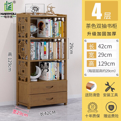 书架下层加入抽屉储物设计,可用来放置一些杂物书籍,大容量的储物空间能够存放更多物品,美观且实用。