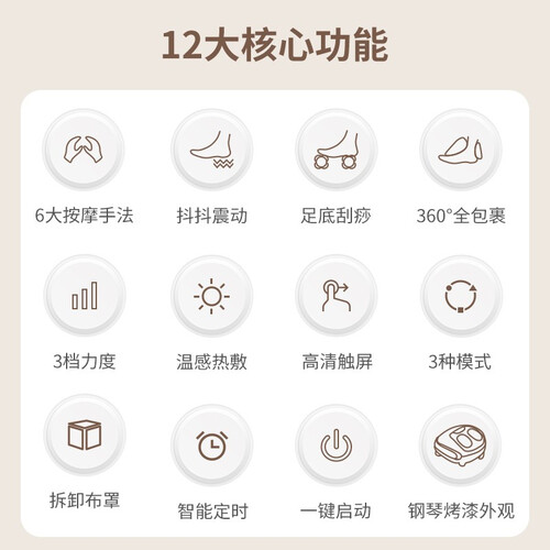 超大的镜面触摸屏,可通过按键操作三大模式,使用方便快捷。内置6大按摩手法,可根据个人情况选择,更加实用。