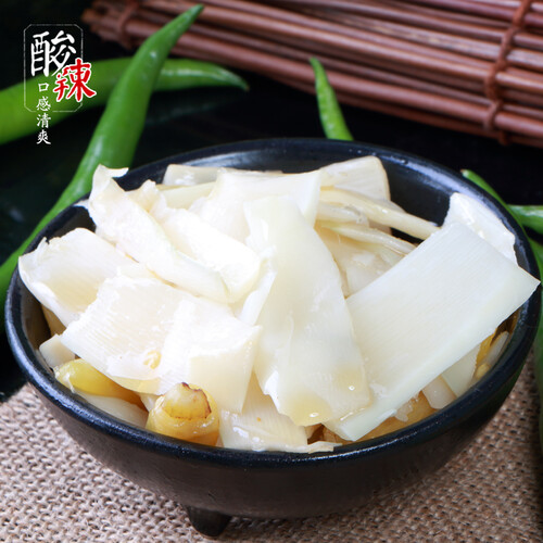 选用重庆本地山椒,经过老坛陈泡,口感酸辣过瘾。精心挑选饱满竹笋,切成薄厚均匀的笋片,入口鲜嫩爽脆,让你越吃越喜欢。
