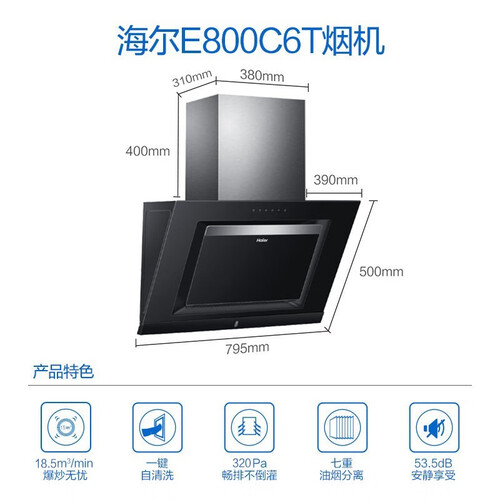 采用悬翼式导烟板,分滤油烟,排烟更快更顺畅,一体化触控面板,功能一览无余,操作简单便捷。