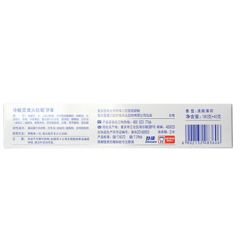 180g容量,能够满足全家人的使用需求。能够增强牙齿耐受力,让你放心吃香喝辣,不用担心牙齿疼痛的问题。